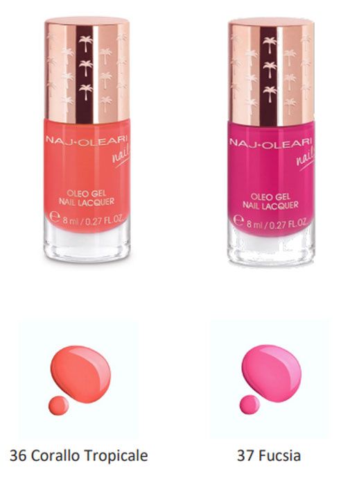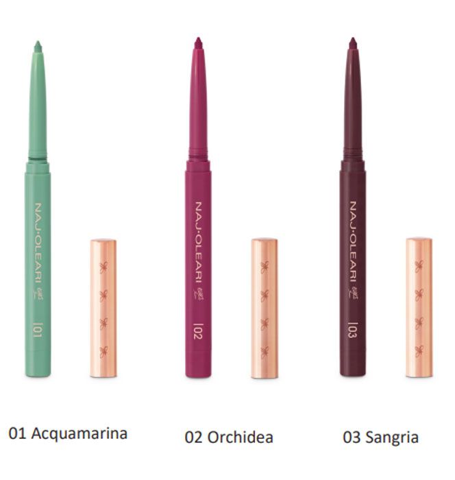 La formula dei trucchi Naj Oleari è stata sviluppata per garantire un effetto duraturo e una sensazione di comfort sulla pelle. La speciale combinazione di polveri sottili e aderenti è perfetta per creare giochi di luci e ombre per un naturale effetto levigato. Le polveri mat, leggere e setose, garantiscono una perfetta aderenza e un colore uniforme. Gli ombretti multi texture e multi finish, sono arricchiti con estratto del fiore di porcellana e olio di avocado dalle proprietà emollienti. Il rossetto cremoso con protezione SPF 25, Sun Kissed Lipstick, è arricchito con microsfere di acido ialuronico e burri di karité e di avocado dalle proprietà emollienti.