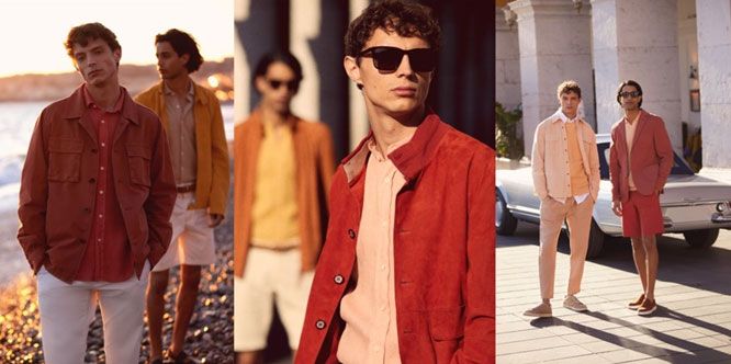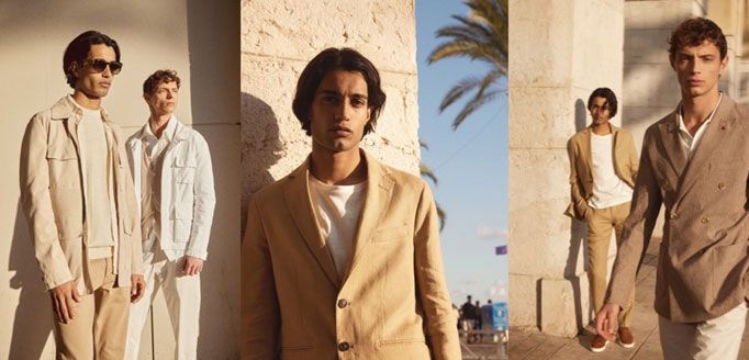 Immancabili le camicie in lino, disponibili sia in tinta unita che con stampa tropicale, e le proposte in cotone in una vasta palette cromatica. I blazer e gli abiti monodpetto e doppiopetto in cotone, jersey, lino e nylon stretch rappresentano la nuova divisa del futuro, caratterizzati da linee e tessuti confortevoli, ma anche da un design elegante e alla moda.