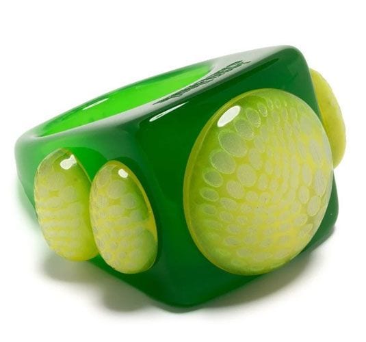 Jean Paul Gaultier reinterpreta il classico anello da cocktail in chiave moderna, utilizzando materiali riciclati e dettagli tridimensionali dall’animo pop. Una creazione unica nel suo genere, irriverente e di design.