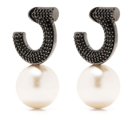 Ferragamo opta per orecchini con perle barocche nere, impreziosite da cristalli sintetici. Un contrasto affascinante che dona un tocco dark anche ai look estivi più romantici.