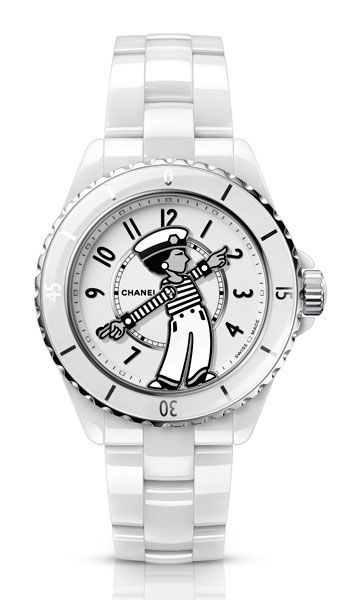 C’è la forza di attrazione dell’acciaio, bilanciata dalla delicatezza della figura di Coco Chanel sul quadrante, impeccabilmente vestita con la sua iconica maglia a righe bretoni e pantaloni blu.