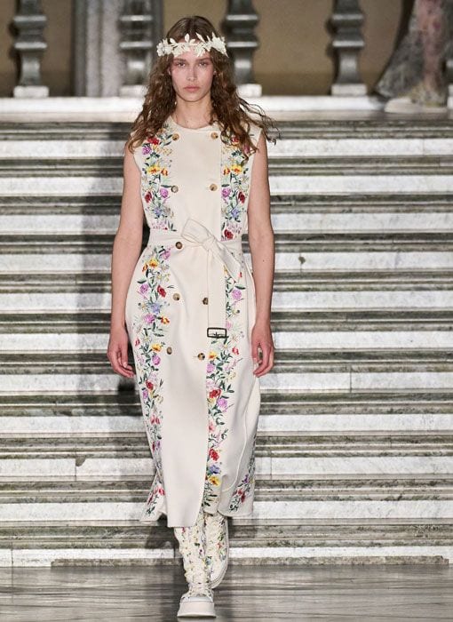 L’ispirazione floreale è un altra grande protagonista della collezione. Stampe di rami e fiori colorati, come se fossero un prato del Midsommar, creano un’atmosfera da sogno. I colletti e i polsini bianchi a contrasto aggiungono un tocco urbano, creando un equilibrio perfetto tra la natura e la città.