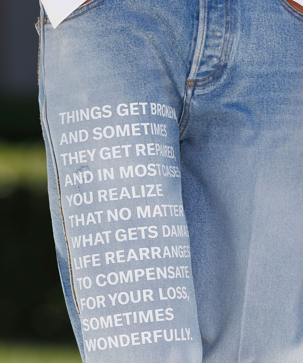 Chiudendo le camicie come un ricordo della cravatta, sbocciando sui revers, intimi e romantici, questi fiori contraddicono i valori dei loro predecessori. Ispirata dal concetto giapponese del Kintsugi – che significa “giunture d’oro”, con l’idea di rendere onore all’imperfezione e alla riparazione – la fragilità diventa un punto da enfatizzare, celebrazione della resilienza dell’umanità, come se i capi fossero fatti di ricordi.