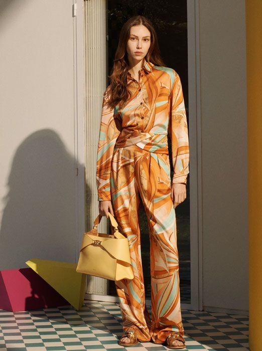 La stampa Maxi Petali è stata declinata anche in calde tonalità della terra, portando una ventata di allegria e freschezza su top, camicie, abiti e pantaloni fluidi. Questa versatilità permette di indossare i capi della collezione in una varietà di occasioni, dal brunch informale con le amiche a un evento serale più formale.
