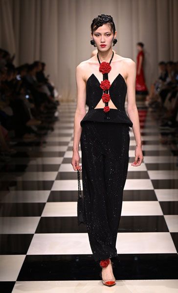 Nel cuore pulsante di Parigi, la città dell’alta moda, sbocciano rose rosse come un inno alla vita e alla bellezza. Queste rose, lucide come lacca, sbalzate su superfici in un motivo toccato dal segno grafico del nero e accenti brillanti d’oro, sono le protagoniste dell’ultima sfilata di alta moda di Giorgio Armani Privè.