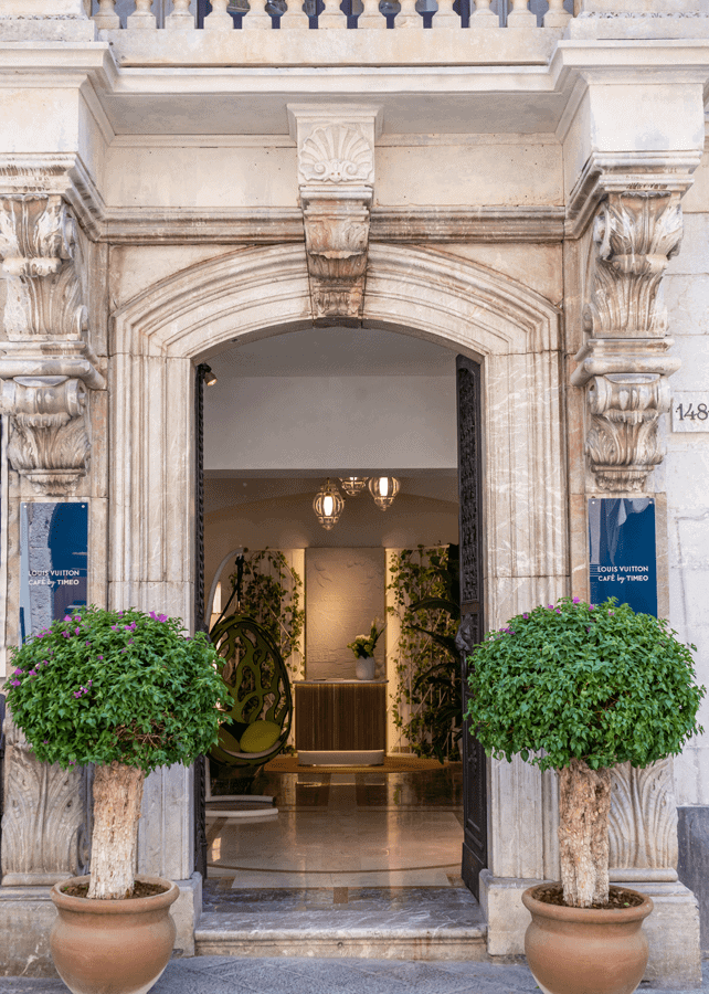 Nel suggestivo scenario di Taormina, il brand presenta le sue ultime collezioni moda per lui e per lei. Ma non è tutto. Al primo piano, ti aspetta il “Louis Vuitton Café by Timeo“, un angolo di paradiso dove rilassarsi dopo lo shopping.