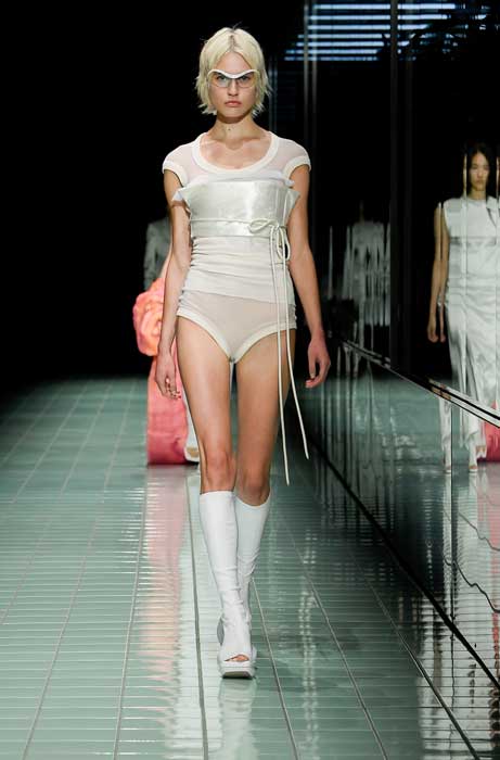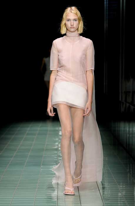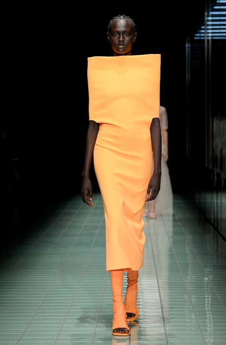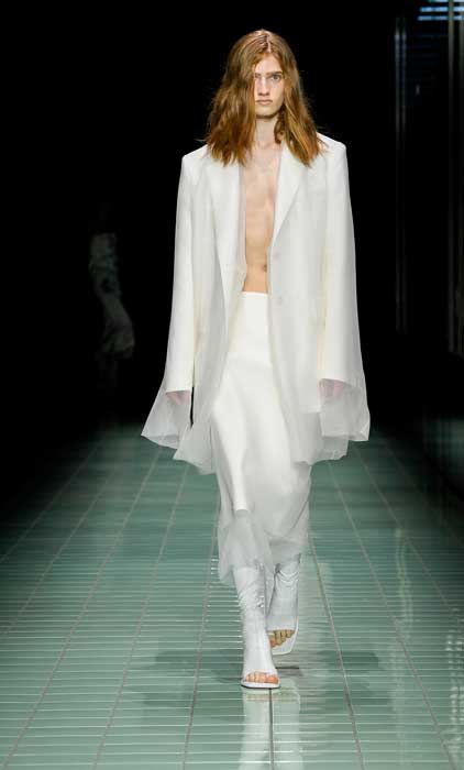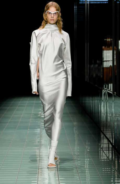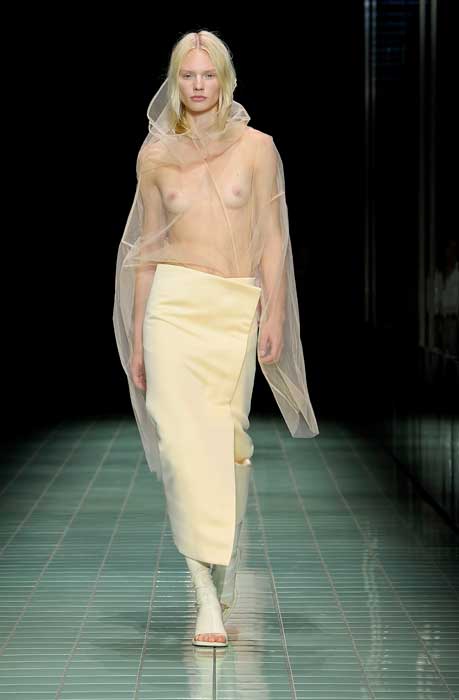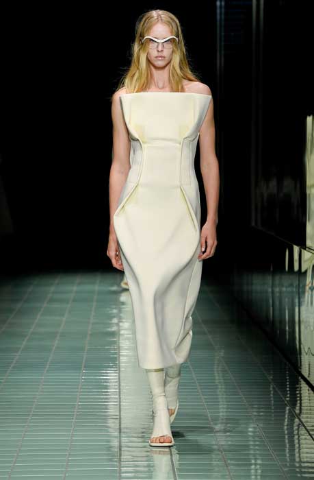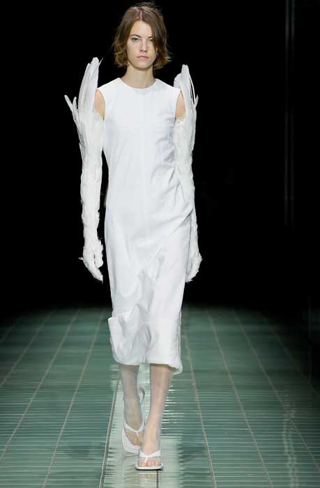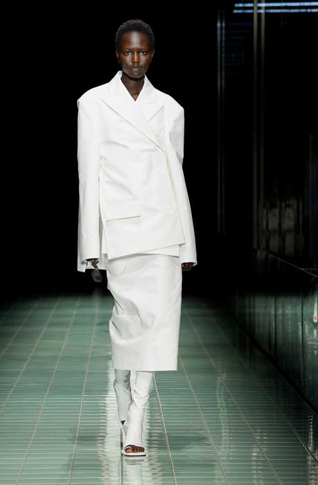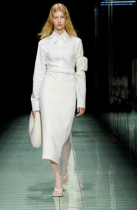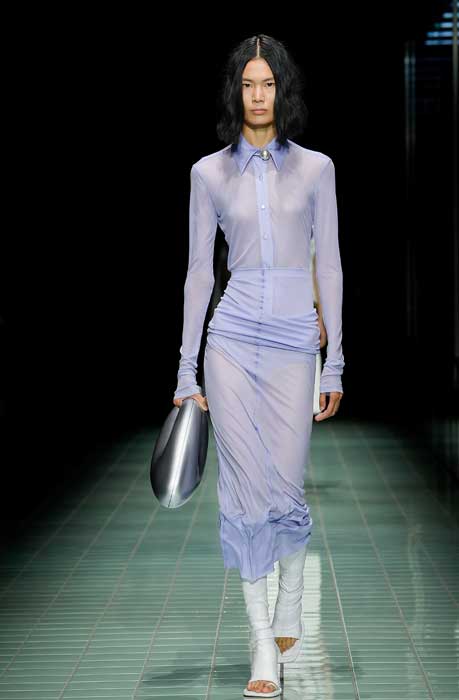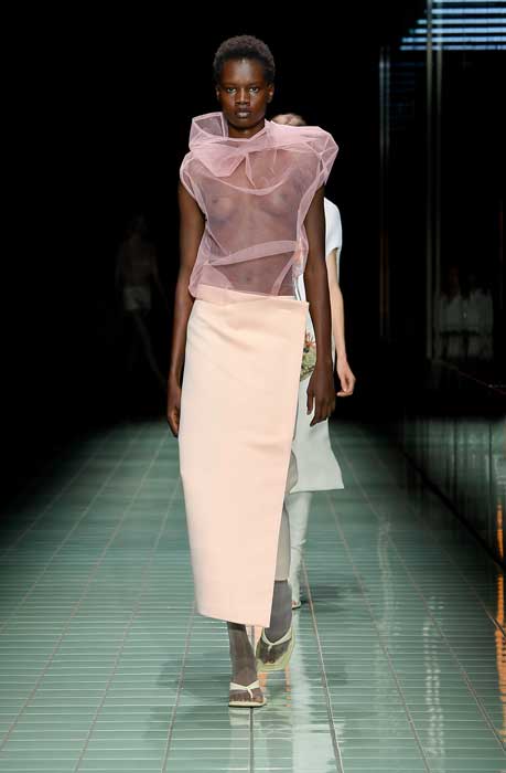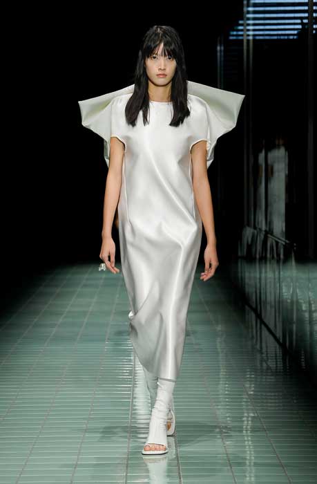 L’influenza giapponese è palpabile. Le silhouette sono una fusione tra l’architettonica simmetria del kimono e le asimmetrie naturali. La cintura “Obi” diventa un leitmotiv, esplorato in varie forme sartoriali. La filosofia estetica Wabi-Sabi, che celebra la transitorietà e l’imperfezione, si riflette nelle scelte di design della collezione.