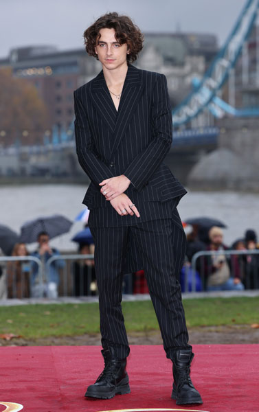 C’è stato un tempo in cui l’abito gessato era l’uniforme ufficiale dei banchieri di Wall Street, ma Timothée Chalamet, con il suo inconfondibile estro, ha appena riscritto le regole dello stile. Al Photocall di “Wonka” a Londra, il giovane attore ha sfoggiato un capolavoro firmato Alexander McQueen che trasforma il gessato in un inno alla modernità.
