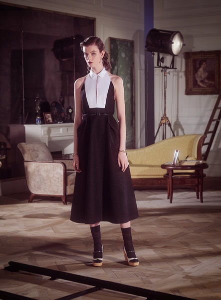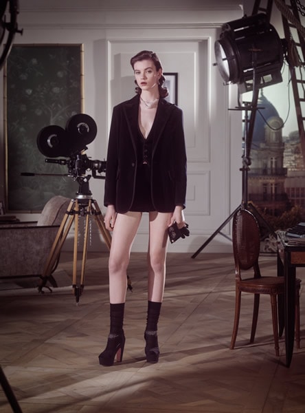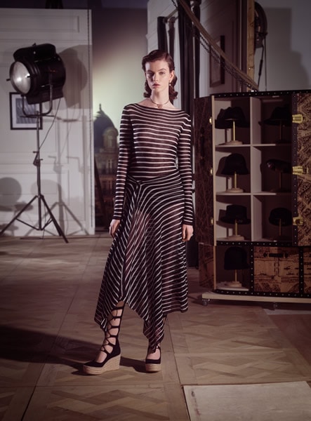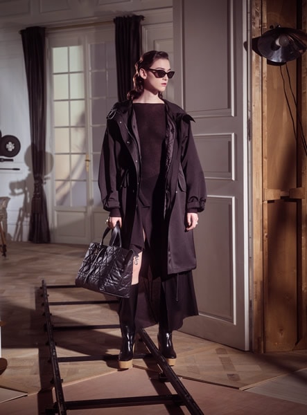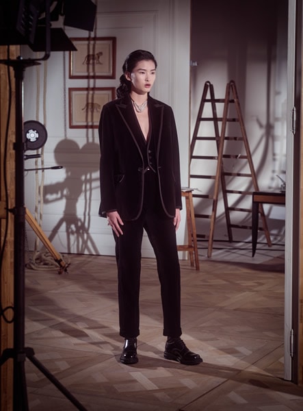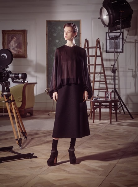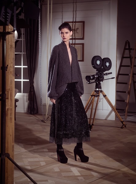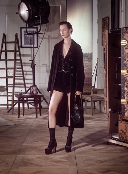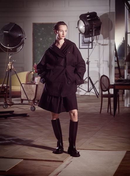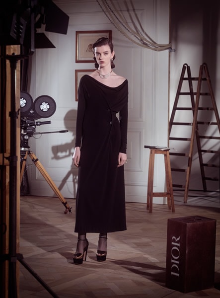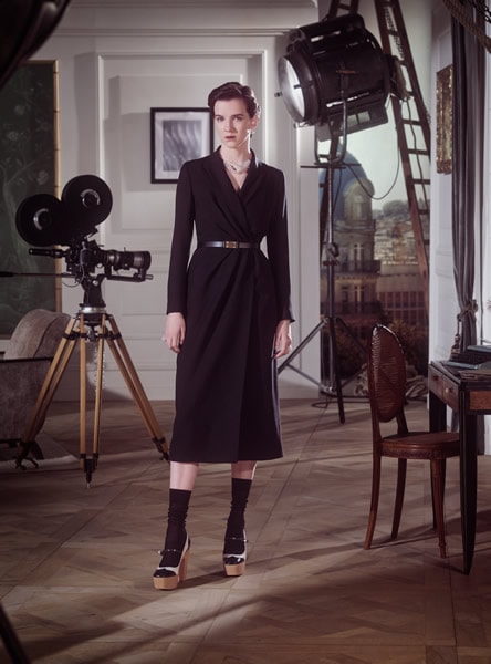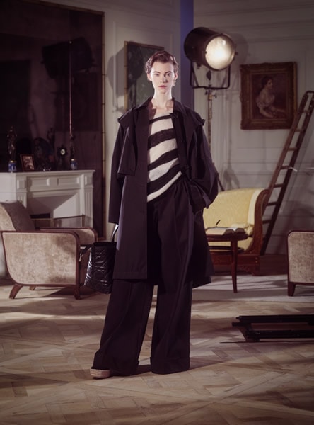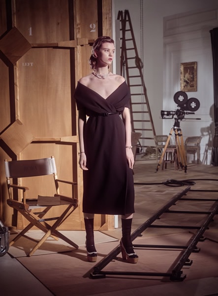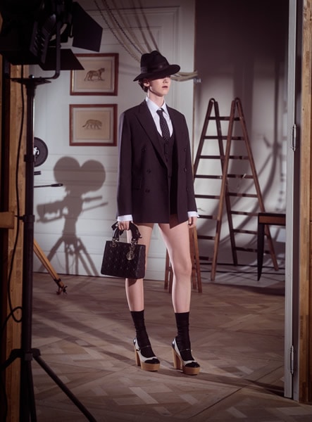Il ponte tra le due culture è incarnato da Marlene Dietrich, un’attrice carismatica e iconoclasta, legata a Dior nella vita e sullo schermo. Maria Grazia Chiuri si è ispirata a lei per creare una collezione che unisce la silhouette Dior al fascino androgino della diva. I tweed utilizzati provengono da una selezione di tessuti maschili inglesi. Nel suo “Petit dictionnaire de la mode”, Monsieur Dior scrisse che i tweed, un tempo pesanti, ora sono disponibili in vari pesi, qualità e colori, e sono estremamente eleganti, sia in campagna che in città. I tailleur maschili di Marlene Dietrich, simbolo di una donna che sceglie liberamente il proprio abbigliamento, si completano con giacche abbinate a pantaloni a gamba larga o gonne a matita sotto il ginocchio.