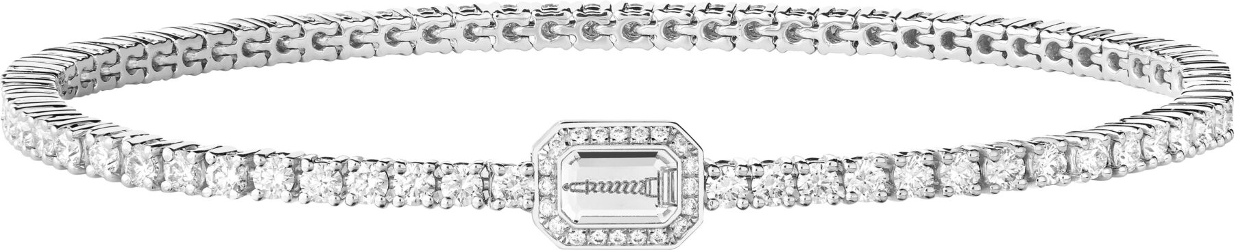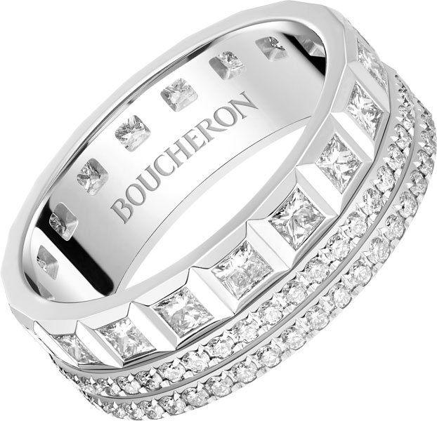 Alla collezione si aggiunge una scintillante novità: la parure nuziale Rivière Vendôme, composta da una collana e un bracciale in oro bianco con pavé di diamanti. Questo set si distingue per la presenza di un cristallo di rocca taglio smeraldo che incanta con la sua trasparenza, evocando la visione aerea di Place Vendôme, un luogo iconico che da sempre ispira la Maison Boucheron.