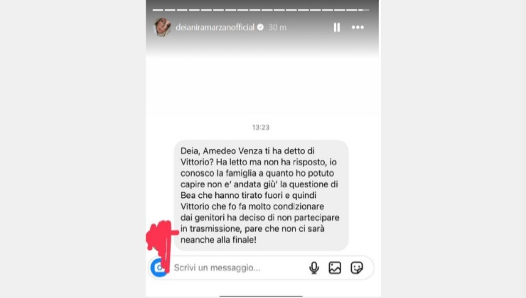 L’ex gieffino in questione, come forse avrete già intuito, è Vittorio, e, a quanto pare, stando alle stories pubblicate su Instagram da parte di Deianira Marzano, la quale ha postato i messaggi di una delle sue followers, sono stati i genitori a consigliargli di declinare l’invito di Alfonso Signorini e degli autori di Canale 5 a presenziare agli appuntamenti live del Grande Fratello. Il motivo è legato a quello che è successo nella casa prima che Vittorio uscisse.
