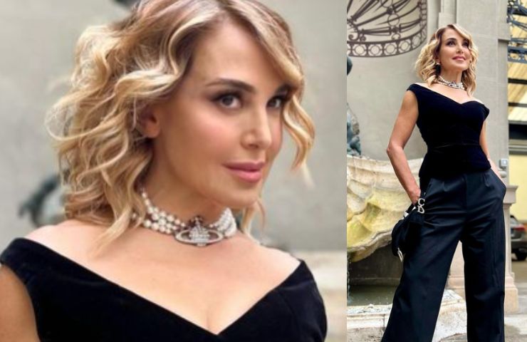 Come si vede dalle immagini la D’Urso ha optato per un elegante completo nero composto da pantalone a vita alta e da un top in velluto liscio con una maxi scollatura a cuore davvero sensuale. Un outfit davvero ineccepibile, reso straordinario dal collarino di perle con fibbia in brillanti di Vivienne Weswood, che illuminava il volto della conduttrice e l’intero decolleté.