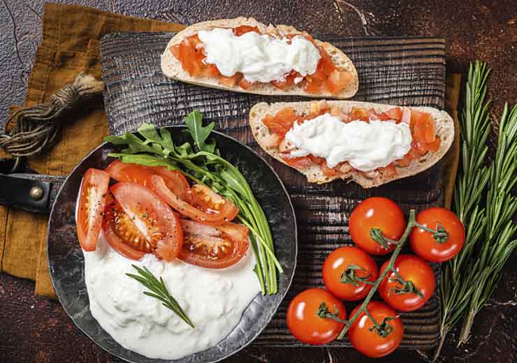 Bruschette al contrario con burrata e pomodorini: perfette per l’aperitivo