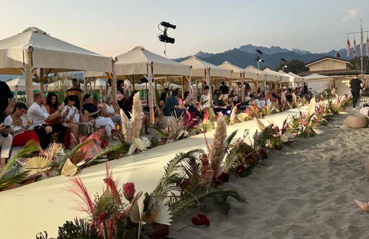 La sfilata di Marcia by Guess si è tenuta nella splendida cornice di Forte dei Marmi nella spiaggia de “La Fenice Beach Club”. Dopo la sfilata è andato in scena un gala sulla spiaggia con una bellissima tovaglia imbandita con dettagli dorati e tropicali. E non finisce qui. Infatti, durante l’occasione è stato inaugurato il meraviglioso locale del marchio, la Guess Terrazza di Viareggio che si specchia sul mare: collocato nella boutique toscana di Guess, articolata su due piani, l’ambiente è colorato da dettagli verde azzurro e impreziosito da pregiate porcellane. Il locale presenta un angolo per i drink e una proposta di menù per pranzi e aperitivi.