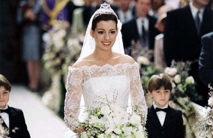 Sempre Anne Hathaway ha catalizzato l’attenzione con il vestito indossato “Principe azzurro cercasi” da vera principessa, reso unico dalle maniche lunghe in pizzo (scopri qui la moda degli abiti da sposa essenziali che sta spopolando).