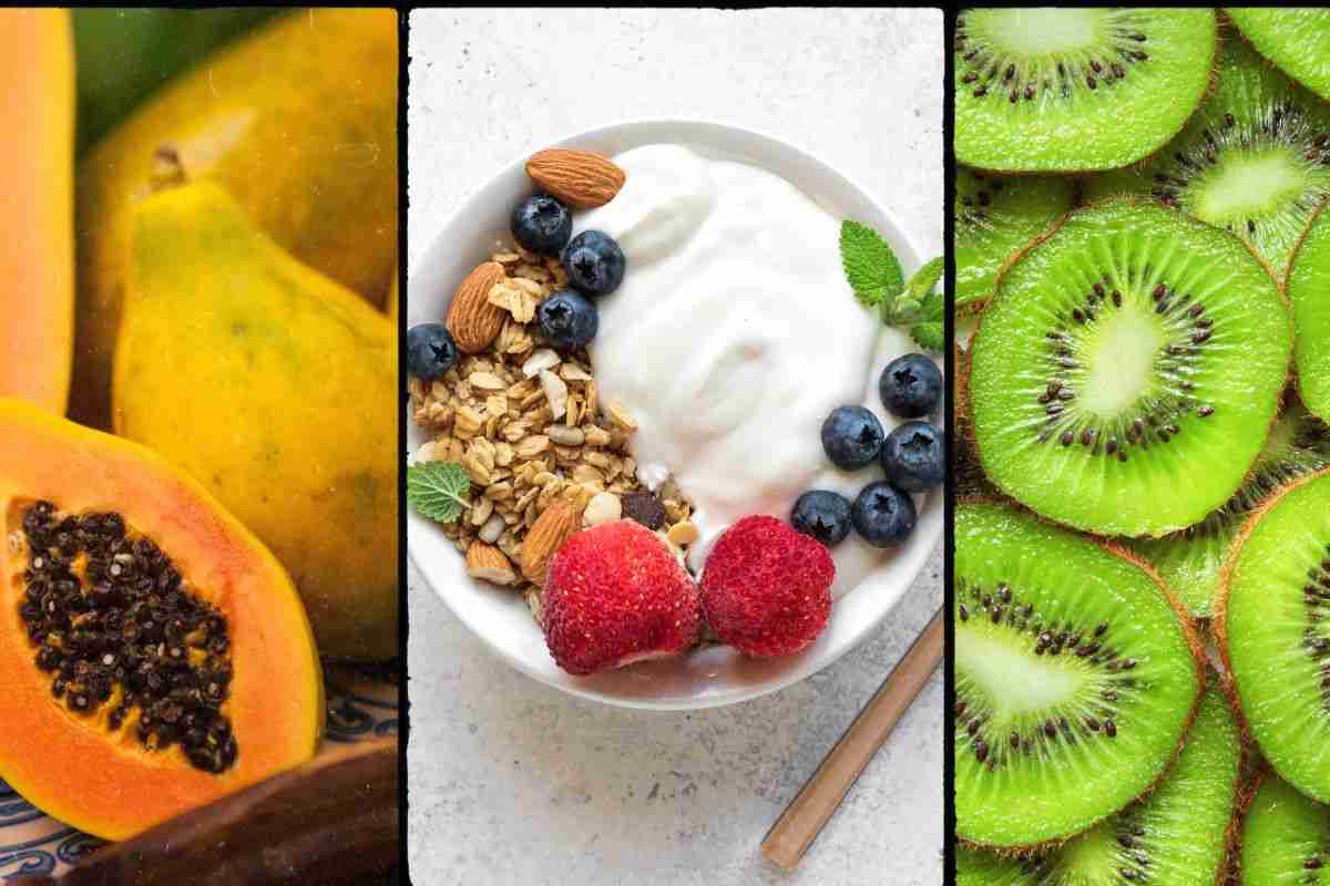 Possiamo consumarlo con frutta fresca, ma anche qualche cereale integrale ricco di fibre, utili contro la pancia gonfia. Altro alimento molto consumato per sgonfiare in poco tempo il ventre è la papaya. Quest’ultima contiene la papaina, una sostanza dalle fortissime proprietà digestive, in grado di rimettere subito in moto il circolo naturale dello stomaco e ritrovando la propria serenità intestinale. Infine troviamo i kiwi, frutti altamente benefici che permettono di ritrovare regolarità di corpo e digerire davvero in fretta.