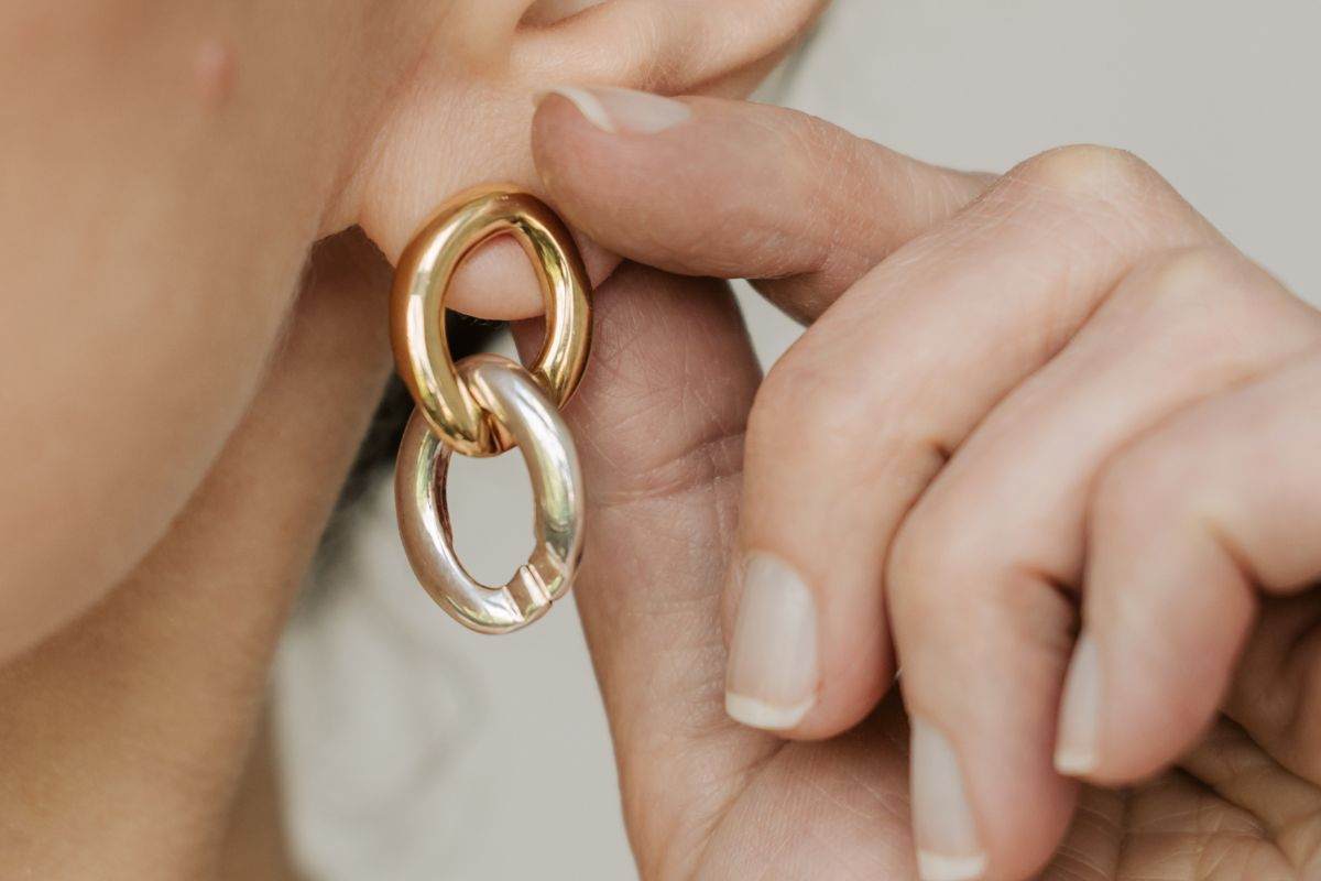 L’orecchio a doppio anello è leggermente più casual rispetto alla perla, tuttavia si sposa alla perfezione con look estremamente eleganti, per donne che non vogliono rinunciare a un pizzico di rock. Possono essere doppi oppure tripli, giocando con le forme sferiche o ellittiche, in questo caso un colore dominante potrà essere l’oro, che ben si sposa a look ton sur ton neri, ma anche blu notte, verde salvia e mattone. Anche un doppio anello con punto luce concederà illuminazione allo sguardo, specialmente se rimangono ad altezza zigomi.