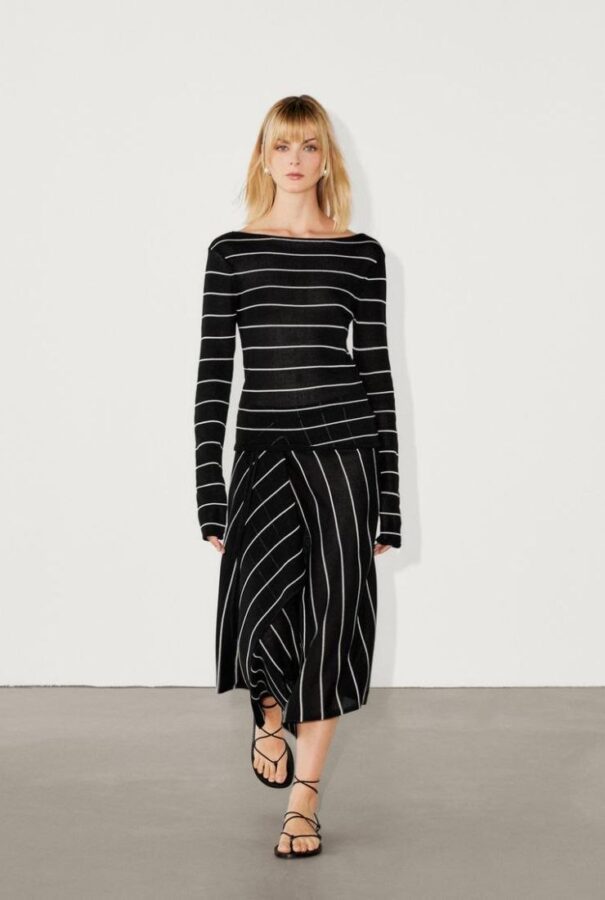 Trovare l’equilibrio tra stile e comodità può essere difficile, ma con i capi giusti è possibile affrontare ogni impegno lavorativo con un tocco di classe. Dalle riunioni formali alle pause caffè, il look giusto fa la differenza e parla di noi ancora prima delle parole. Ad esempio, per affrontare le giornate lavorative con stile e comfort, un completo in maglia a righe è una scelta vincente. Immagina una gonna midi abbinata a un cardigan coordinato: questo ensemble non solo offre un tocco sofisticato, ma garantisce anche la comodità necessaria per l’intera giornata. Marchi come Massimo Dutti propongono gonne in maglia a righe con chiusura a fiocco, perfette per un look coordinato e moderno.