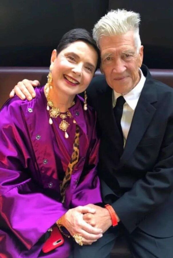 Questa capacità di Isabella di reinventarsi si riflette anche nella sua carriera cinematografica, dove ha lavorato con alcuni dei registi più innovativi del suo tempo. Il suo rapporto con David Lynch – scomparso qualche giorno fa – tanto professionale quanto personale, è ormai leggenda. Dopo il loro incontro sul set di Velluto Blu, film in cui Isabella interpretava il ruolo iconico di Dorothy Vallens, i due iniziarono una relazione intensa, caratterizzata da una forte alchimia artistica.