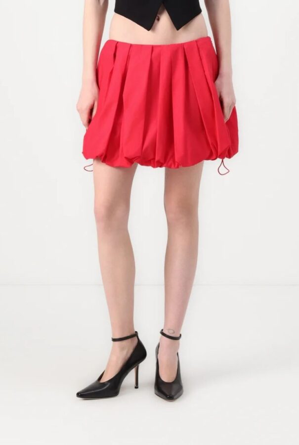 E vogliamo parlare della minigonna balloon di Pinko? Rossa, forte, costa 184,99 € ma la sensazione è che valga molto di più. È in cotone, pieghe regolabili, chiusura con zip e fascia elastica che la rende facile da indossare anche quando sei di fretta. Non è una gonna da tenere ferma, infatti si muove, si gonfia, cambia con te. Con una scarpa sportiva diventa giocosa, con un tacco è subito sofisticata. E il colore salsa è quel tipo di rosso che fa notare senza gridare. Non ti obbliga a sentirti in tiro, ma ti regala quel qualcosa in più, senza sforzo.