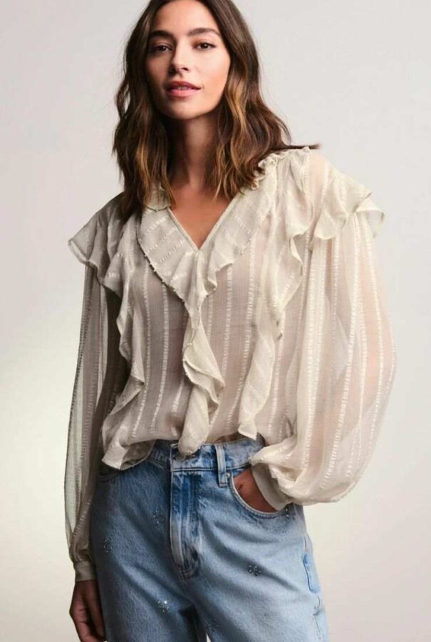 Eleganza leggera e spirito boho si incontrano in tre camicie con ruches che non passano inosservata. Un must della stagione da tenere d’occhio.