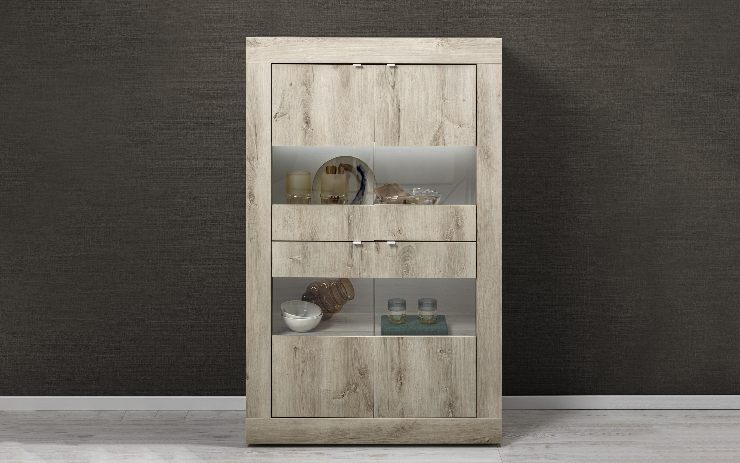 Troviamo poi la credenza/vetrina BASIC, dal savoir-faire romantico ed evocativo, a doppia anta e 4 superfici in vetro con un ripiano ciascuno. La sua bellezza? Oltre all’effetto venatura del legno nonostante la superficie liscia, permette di nascondere ciò che non si voglia far vedere, al contrario di mostrare gli oggetti più belli e da collezione, potendo quindi essere ammirati tramite le ante trasparenti. Anche in questo caso troviamo diverse nuances da scegliere come pino bianco, combinazione rovere e bianco neve oppure noce e bianco neve.