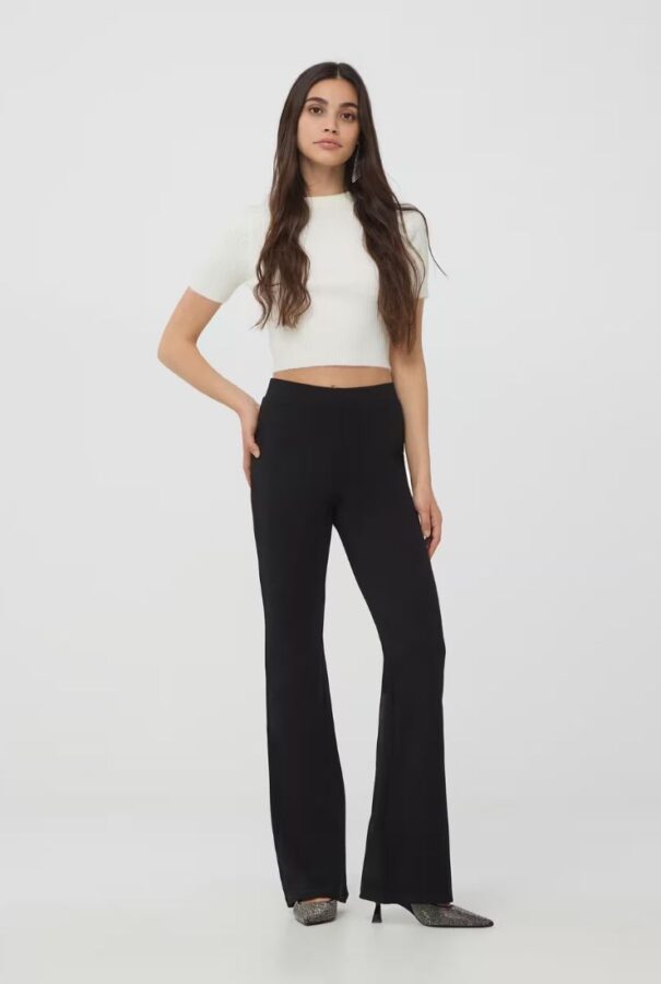 Certo, ci sono anche cose da evitare. Il pantalone a zampa è uno di quei capi che, se mal calibrato, può fare più danni che altro. Le scarpe troppo basse, ad esempio, rischiano di farlo strisciare per terra. Oltre a rovinarsi, il pantalone perde anche tutta la sua linea. Allo stesso modo, se scegli un modello molto ampio, stai attenta a non abbinarlo a qualcosa di troppo largo sopra: effetto sacco assicurato. Il trucco sta sempre nell’equilibrio. Se il pantalone è il protagonista, puoi completare con camicie e top corti. Non abbinare il lungo sul largo, mai!