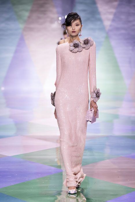 Durante la settimana della Haute Couture parigina, gli abiti della collezione danzano sulla passerella in un ballo immaginario di linee, luce e colori.