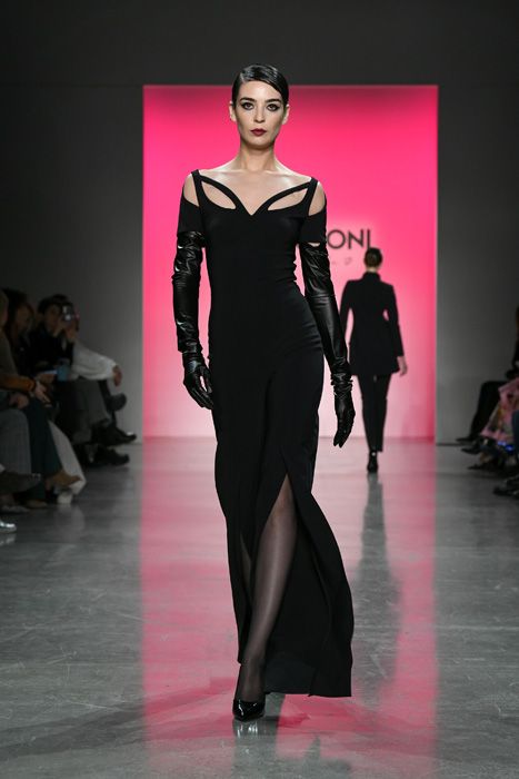 La sfilata di Chiara Boni La Petite Robe durante la NYFW autunno/inverno 2023/24 ha portato sulle passerelle della Grande Mela un’eleganza essenziale e precisa. La collezione, che si ispira alle immagini sensuali e nette di Helmut Newton, vede modelle vestire silhouette sartoriali con un appeal femminile e sofisticato. La palette di colori è focalizzata sul nero, illuminato da tocchi di bianco, azalea e bagliori metallici.