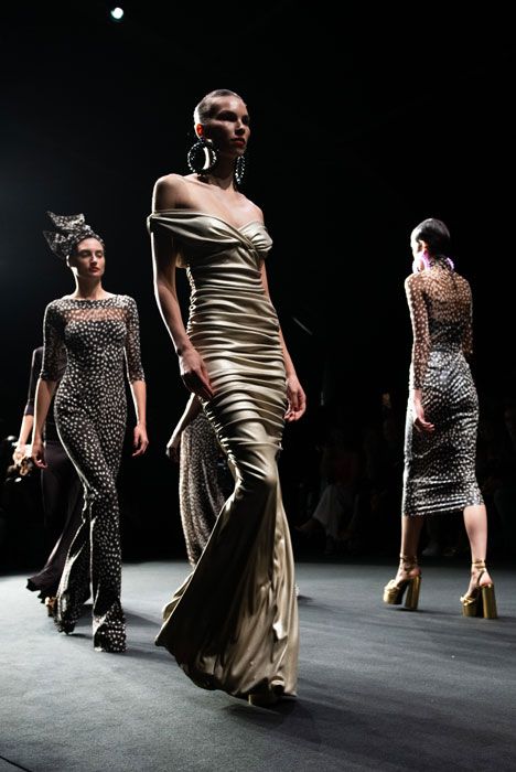 Scollature femminili, spalle accentuate e baschine caratterizzano la selezione di abiti realizzati nel tessuto elasticizzato e compatto caratteristico del brand che regala una fluidità sensuale negli abiti che accarezzano il corpo con raffinata eleganza. Cut-out, intrecci e trasparenze discrete rendono la collezione ancora più seducente.