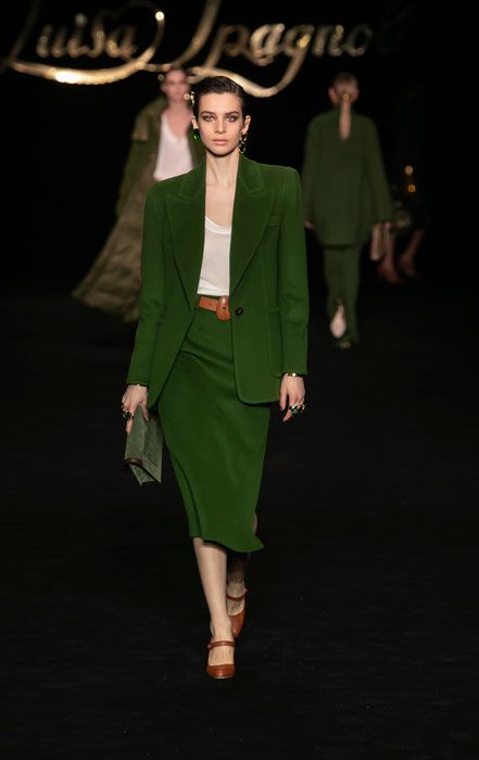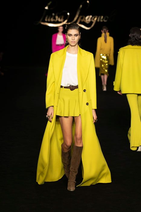 Le muse di Luisa Spagnoli, creature notturne attratte da un guardaroba sofisticato e ricercato, sono state presentate sulla passerella della Scuola Militare Teulié, in un’atmosfera tinta di nero. La palette cromatica è stata definita da colori primari come giallo limone, rosso corallo, arancio, blu Klein, fucsia, verde oliva e nero, affiancati da motivi imprescindibili del guardaroba perfetto come il classico e senza tempo maculato, simbolo di eleganza e ribellione.