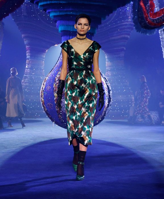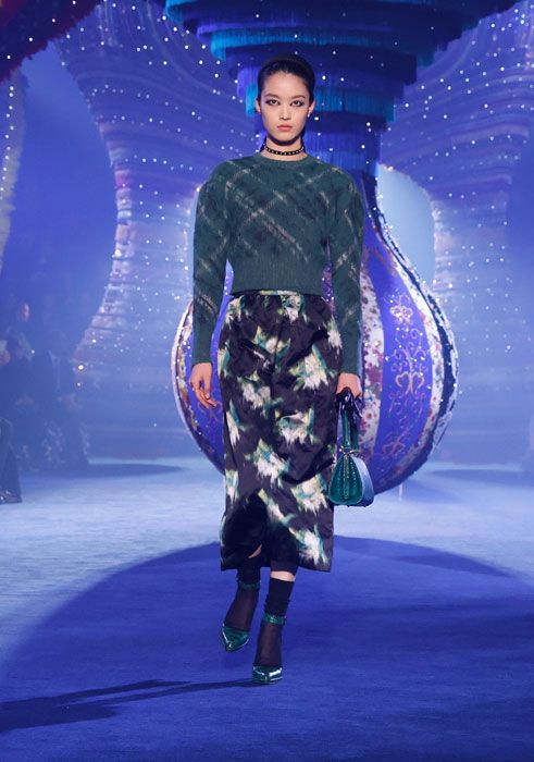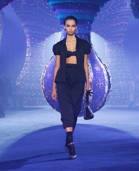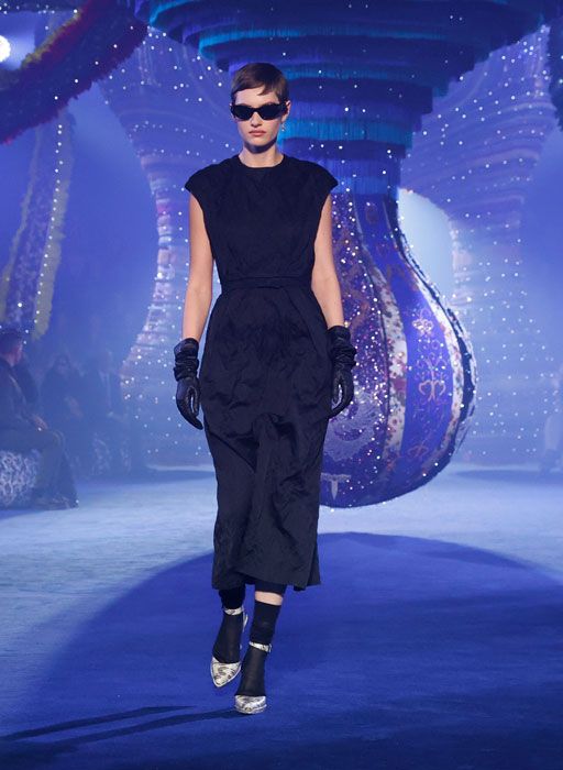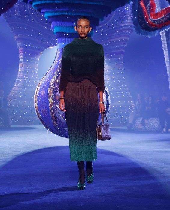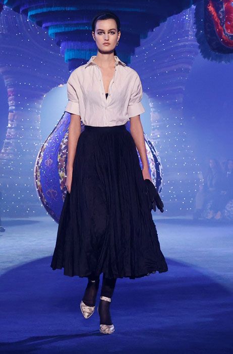 Maria Grazia Chiuri, nella creazione della nuova collezione per il prossimo autunno inverno 2023/24, si è ispirata a tre donne protagoniste della cultura francese: Catherine Dior, Juliette Greco e Édith Piaf. La rilettura degli anni ’50 rappresenta una chiave per esplorare la storia di Dior, ogni volta in modo completamente nuovo, e di approfondire lo stile francese attorno a tre personalità straordinarie. I motivi floreali scelti da Monsieur Dior sono stati riletti in modo innovativo, con la texture del tessuto screziato intrecciata con un filo metallico che rende il materiale vivido, malleabile e cancella i contorni, ottenendo un effetto visivo astratto.