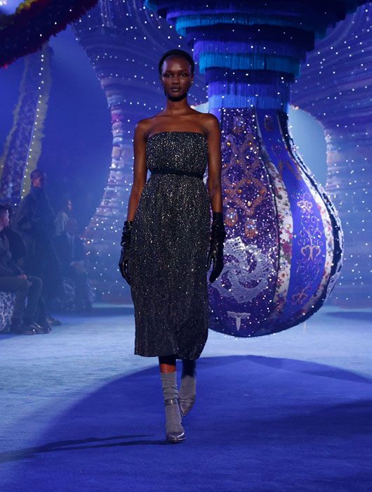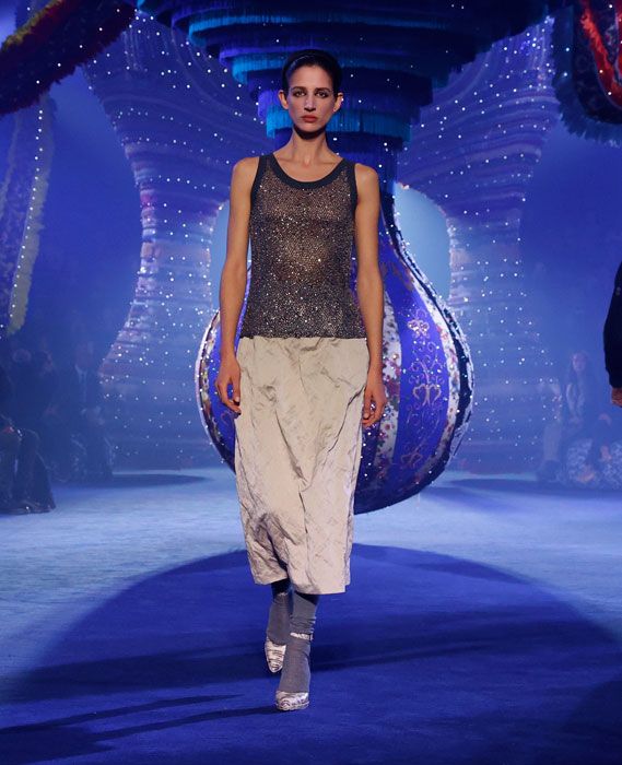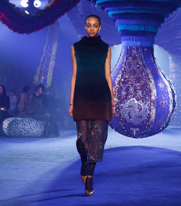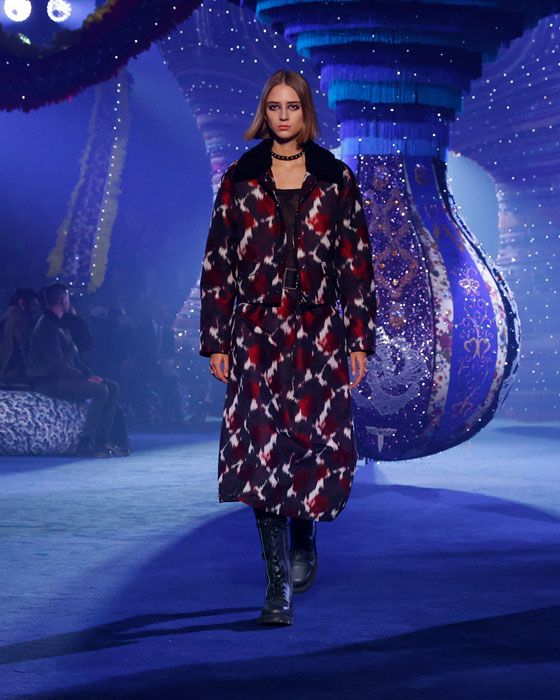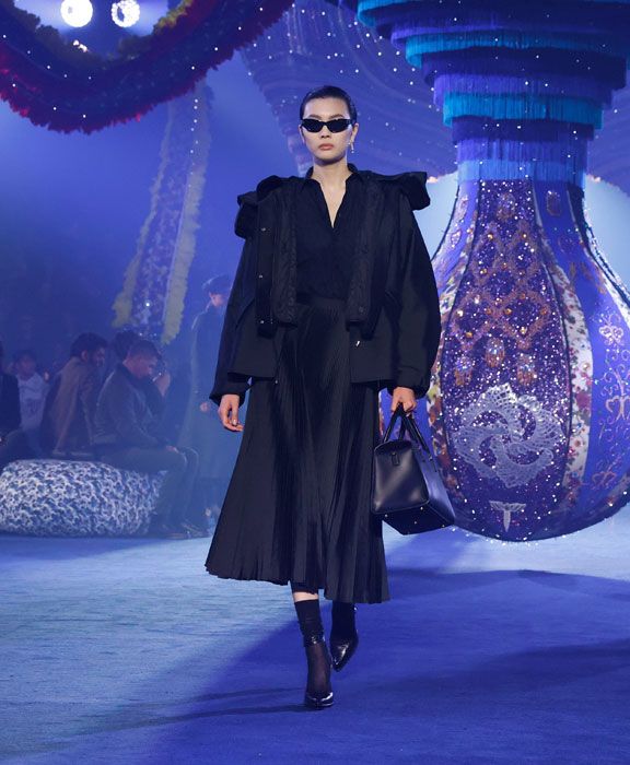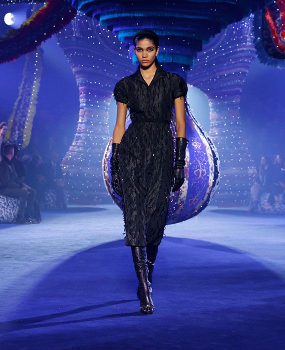 Per Maria Grazia Chiuri, l’allestimento per la presentazione della collezione prêt-à-porter autunno-inverno 2023-2024 di Dior svolge un ruolo fondamentale nel mettere in risalto la sua ispirazione. Per questo spettacolo unico, ha chiesto all’artista portoghese Joana Vasconcelos, nata a Parigi nel 1971, di occupare il luogo con una delle sue monumentali installazioni, intitolata “Valkyrie Miss Dior”, una proliferazione di forme organiche che interagiscono con l’architettura.