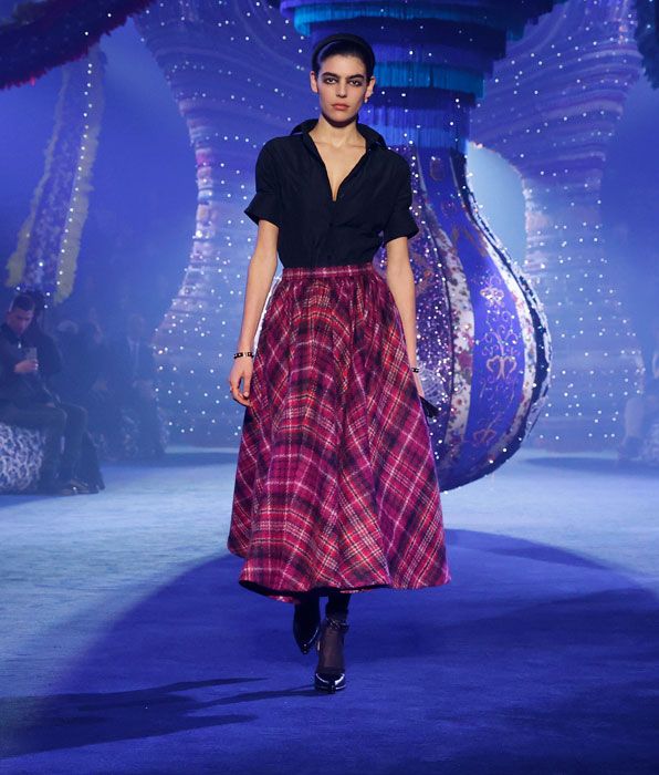 I colori primari sono stati la punta di diamante della sfilata, con tonalità di rubino, smeraldo, topazio giallo e blu che hanno saputo conferire eleganza e stile alle creazioni. Delicate sfumature di tartan hanno poi vestito i cappotti, le giacche e le gonne diritte, conferendo loro un tocco di raffinatezza e originalità. I tessuti utilizzati sono stati selezionati con grande cura e attenzione alla qualità e alla resa estetica: dalle sete ai velluti, passando da quelli tecnici ai pizzi, ogni materiale è stato scelto con scrupolosità, rigore e attenzione al dettaglio.