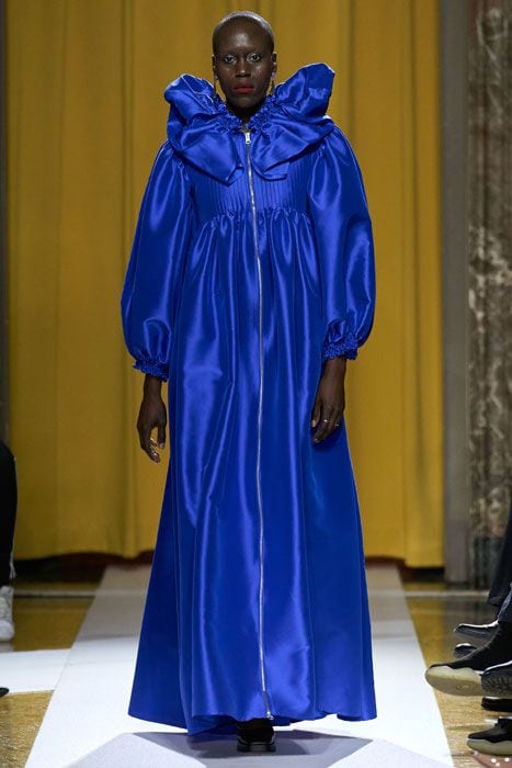 Laveau adotta pieghe, balze, ritagli e tessuti morbidi per mettere in risalto la forma femminile, creando fantasie ispirate ai simboli del passato e alle cicatrici della vita. Il colore è il re, esuberante compagno nel viaggio tra gli imprevisti e gli alti e bassi della vita.