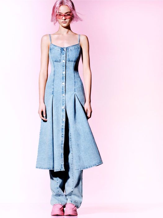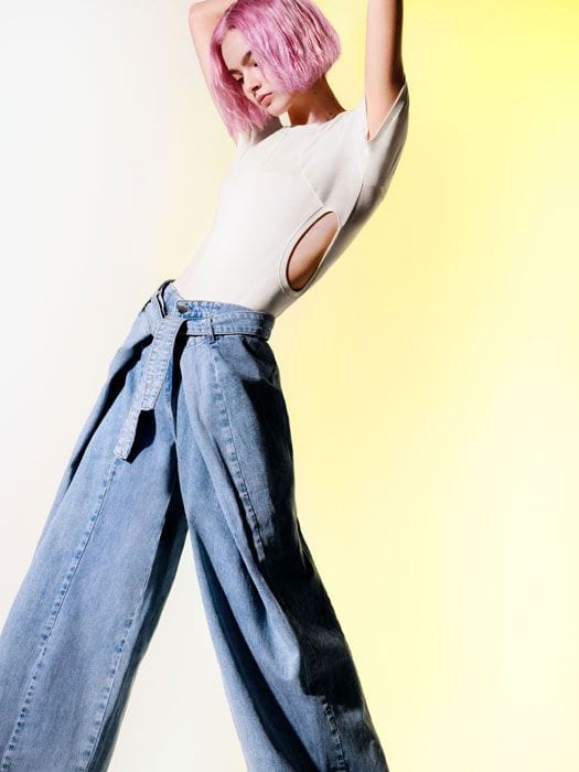 Scopriamo la nuova collezione, look per look, dei vestiti Desigual x Matirepierre. Il denim è uno dei tessuti protagonisti della collezione, reinventato in rosa pallido per creare un completo di pantaloni e giacca multiposizione, trasformabile in un poncho con bottoni a pressione. Dai jeans snow bleach ad un vestito con bretelle dal taglio innovativo, ai pantaloni con gamba super ampia Tre vestiti completano la serie di fotografie, tra cui un vestito trompe l’oeil, un abito bicolore con doppie bretelle e un vestito con una stampa stile cosmico in rosa e arancione. La collezione unisce sostenibilità e design eclettico, dando vita a capi unici ed eleganti.
