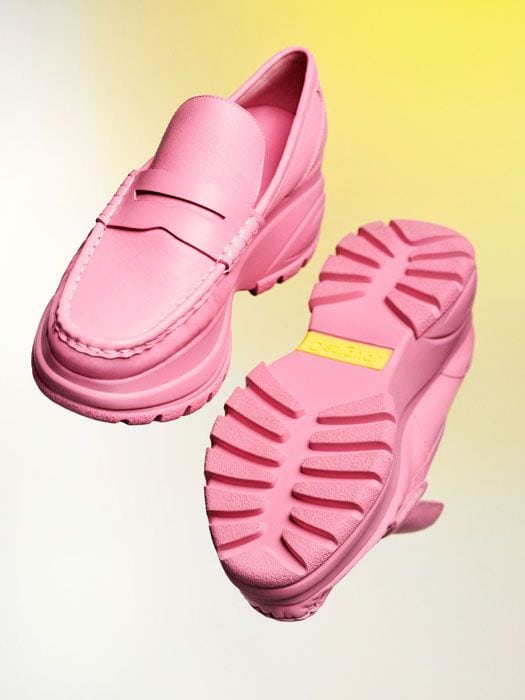 Per quanto riguarda le calzature, il designer fonde mocassini e sneakers, creando un originale ibrido in tonalità rosa che dona un tocco di originalità ad ogni outfit.