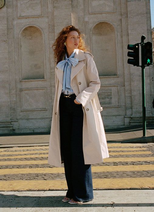 A completare il tutto, un tailleur pantalone color crema in misto lino offre versatili opportunità di styling. E poiché il trench coat non passa mai di moda, una versione leggera in lino è il capo passe-partout per eccellenza.