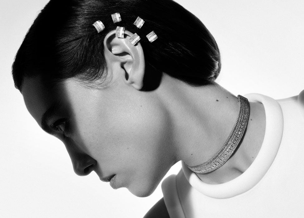 Questo straordinario pezzo di alta gioielleria combina i motivi Grosgrain, Clou de Paris e Double Godron con una linea di diamanti. Un accessorio perfetto per sentirsi uniche in ogni occasione, ideale per decorare una coda di cavallo, uno chignon o un’acconciatura romantica.
