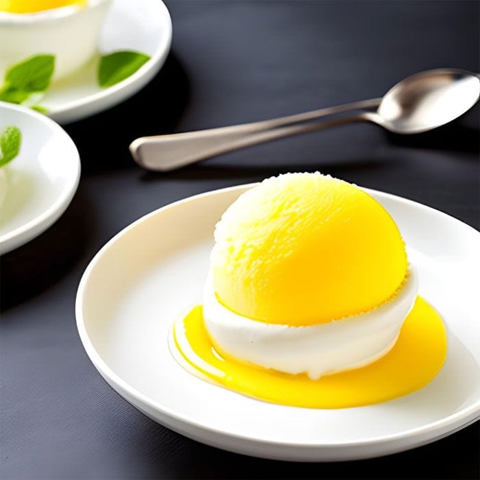 Infine, un rinfrescante sorbetto al limone per concludere il pasto in leggerezza. Spremete limoni freschi, zuccheratene il succo e mescolatelo con acqua. Mantecate il sorbetto e servitelo in coppetta, decorandolo con qualche fogliolina di menta.