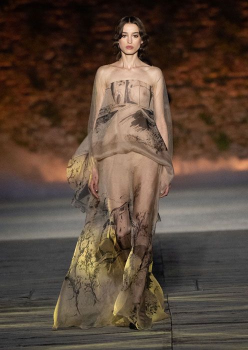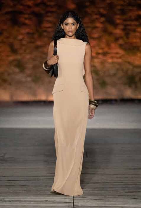 La collezione Resort 2024 di Alberta Ferretti è un’incantevole mescolanza di romanticismo e passione, legata indissolubilmente al suo paesaggio nativo. I colori della collezione richiamano il panorama della Romagna, i toni della sabbia, delle pietre, del cielo, dei prati, e i riflessi del sole sulle acque, rendendo omaggio alla bellezza naturale della regione.
