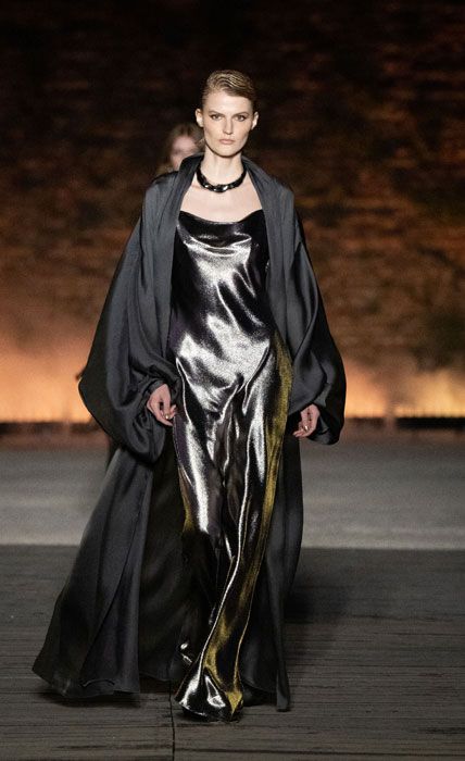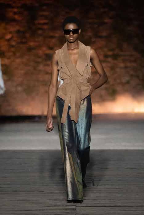 È indubbio che questa presentazione di Alberta Ferretti, a Rimini, rifletta un autentico omaggio alla leggendaria figura di Federico Fellini e al fascino della città natale del regista, che ha ispirato la sua arte e la sua visione del mondo. Insieme, moda e cinema svelano l’indiscutibile potere della creatività e dell’immaginazione, diventando mezzi attraverso i quali le nostre fantasie e i nostri sogni prendono forma e diventano realtà.