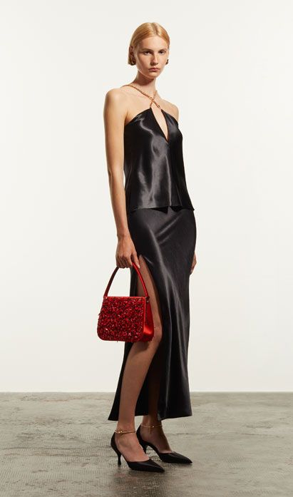 E gli accessori? Devono brillare, ovviamente! Borse con dettagli metallici sottili, curve organiche sui modelli cut-out, e una borsa da sera che celebra Marilyn Monroe con cristalli e coralli, le simmetrie vengono distorte con eleganza. “Semplicemente divine!”