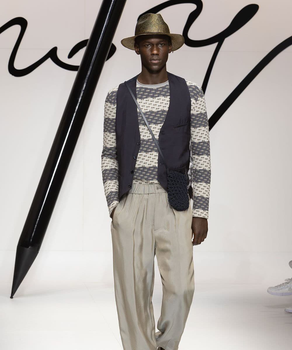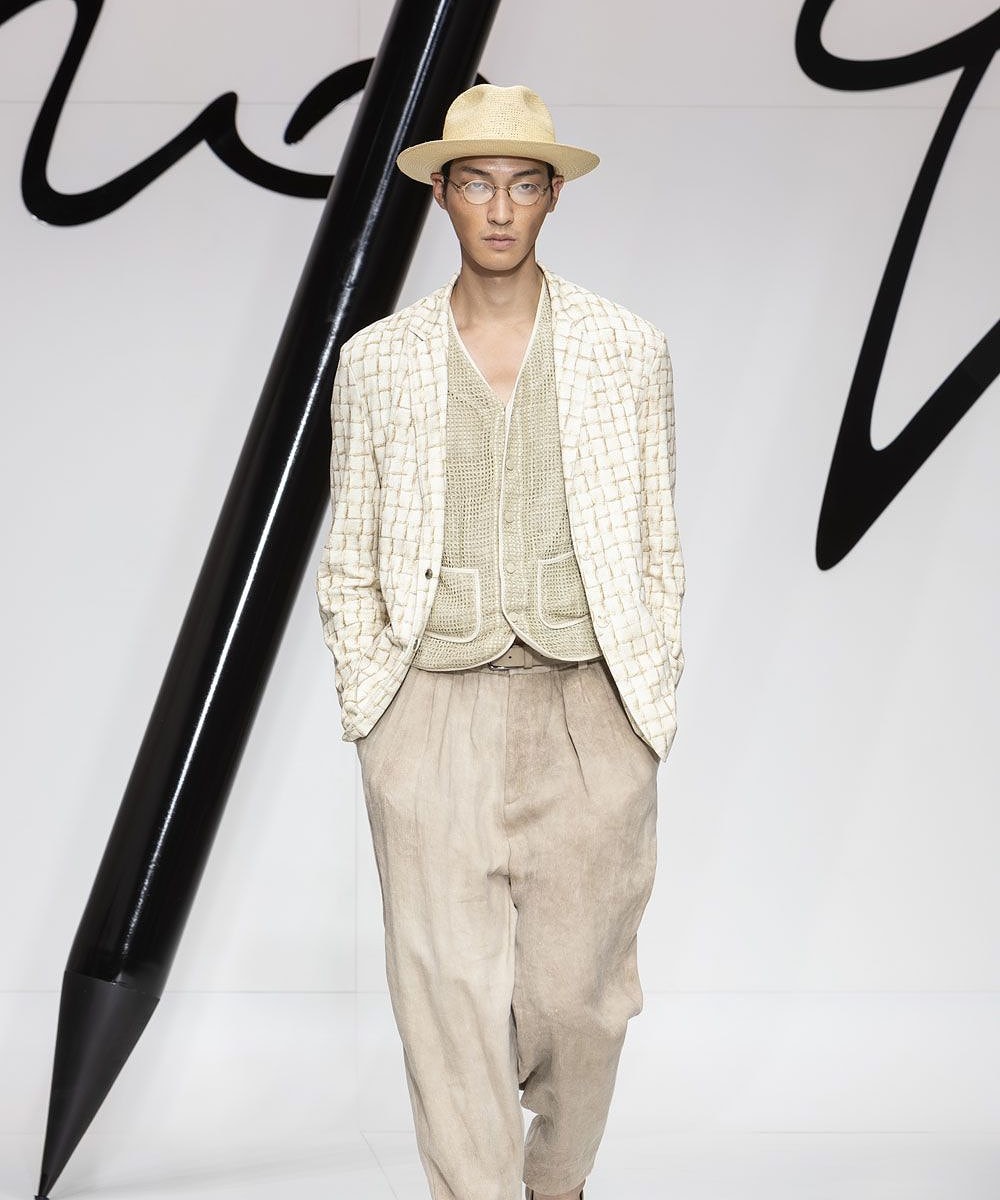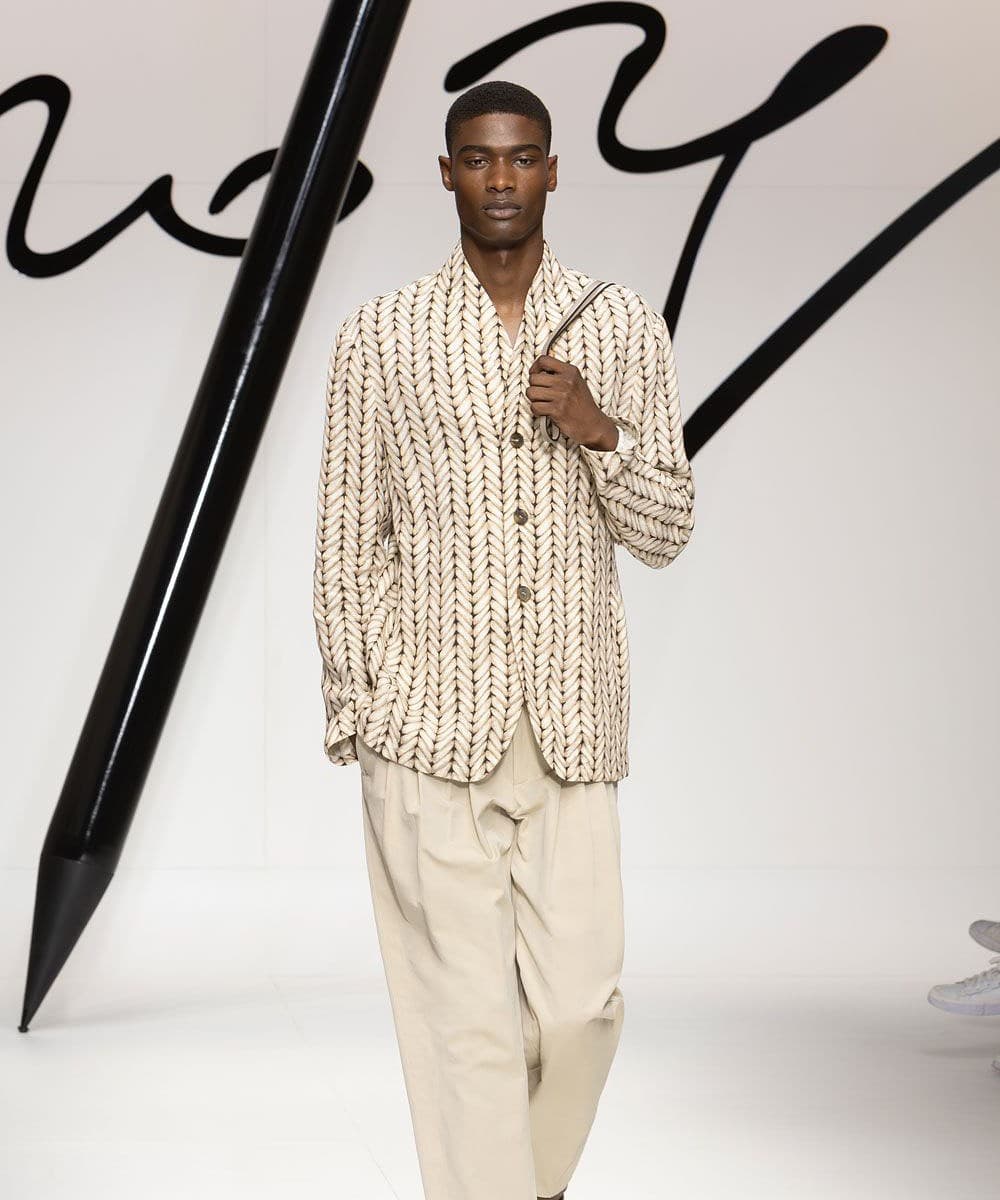 Cartella stampa della collezione uomo primavera estate 2024 di Giorgio Armani “Il grande intreccio”