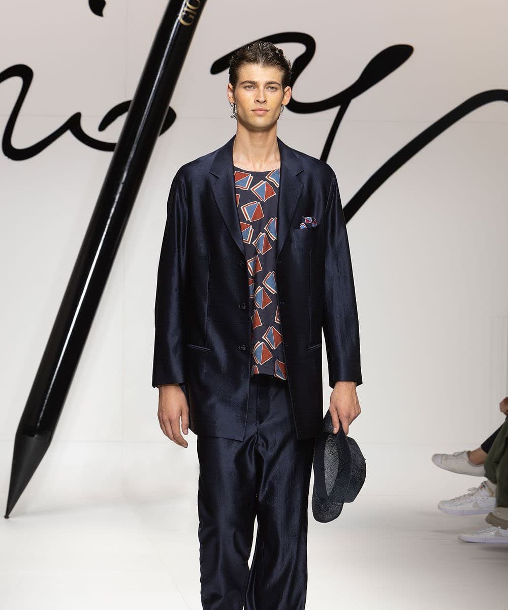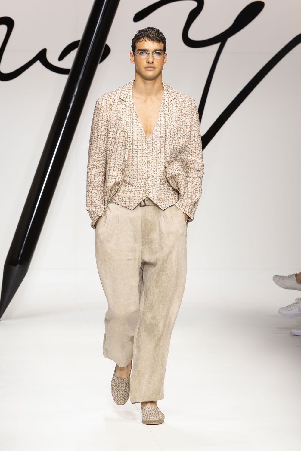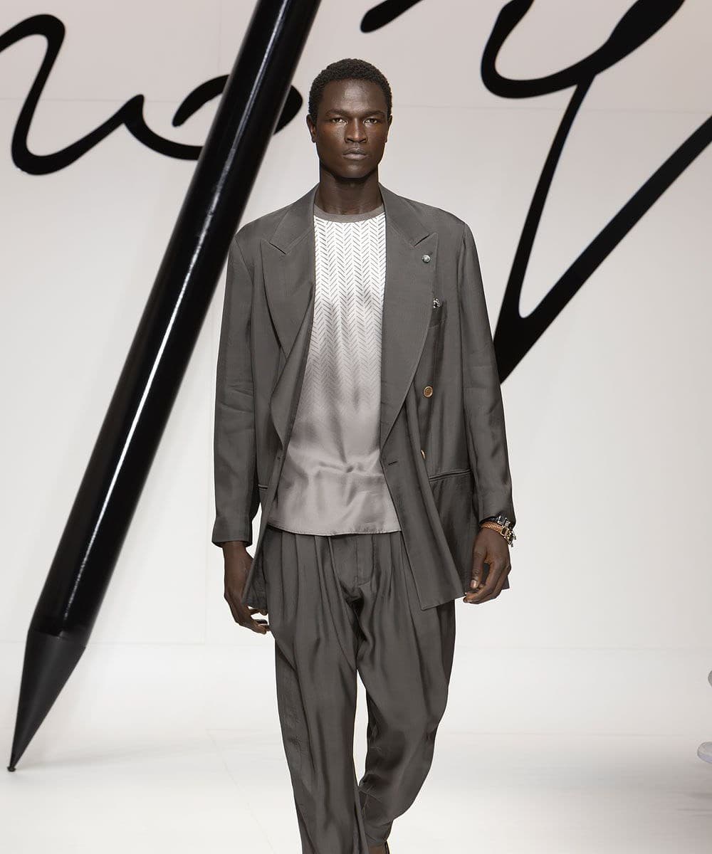 Cartella stampa della collezione uomo primavera estate 2024 di Giorgio Armani “Il grande intreccio”