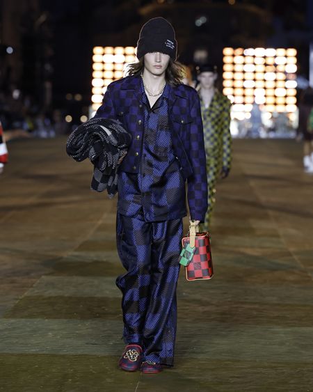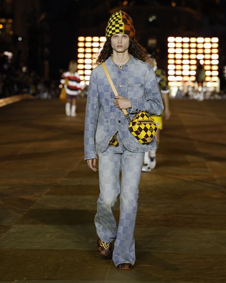Le rielaborazioni colorate del Damier trovano la loro strada nei dettagli sartoriali, nei pigiami e nel denim, in un gioco di colori primari che risvegliano e rinvigoriscono la classicità del motivo.