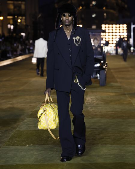 La collezione di gioielli, invece, è caratterizzata da perle, ciondoli a forma di fiore e cristalli, rafforzando l’attitudine dandy che riecheggia nei bottoni militari trasformati in orecchini. Le catene in tessuto si ispirano alle cinghie storicamente utilizzate da Louis Vuitton per fissare i bauli durante le spedizioni, mentre le sfere di collane e braccialetti sono forgiate in argento massiccio. Una celebrazione del lusso artigianale, queste creazioni sono destinate a lasciare un segno.