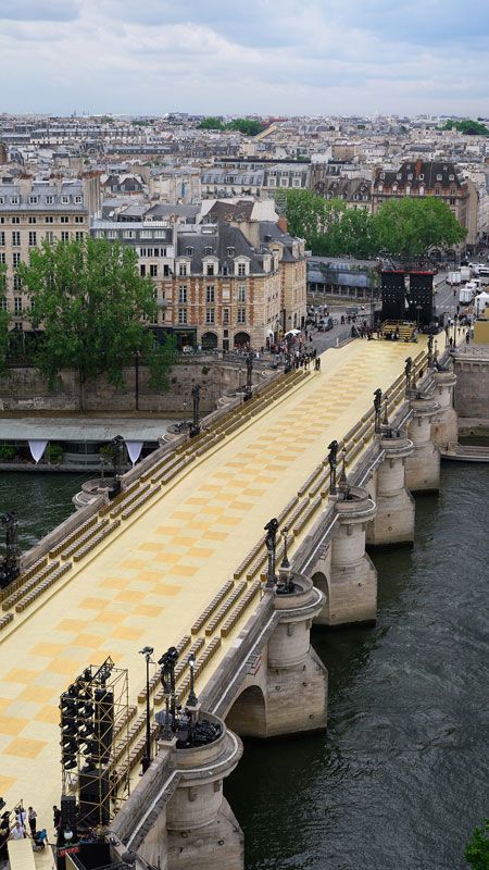 La sfilata, che ha avuto luogo sul Pont Neuf, il ponte più antico di Parigi, ha rappresentato un ponte metaforico tra la Virginia, lo stato natale di Pharrell Williams, e Parigi, la città che ha accolto Louis Vuitton e la sua Maison. Un percorso che ha richiamato i ricordi della Princess Anne High School di Virginia Beach, un istituto fondamentale per la formazione del Direttore Creativo, così come i ricordi della strada che lo hanno guidato fino ad oggi.