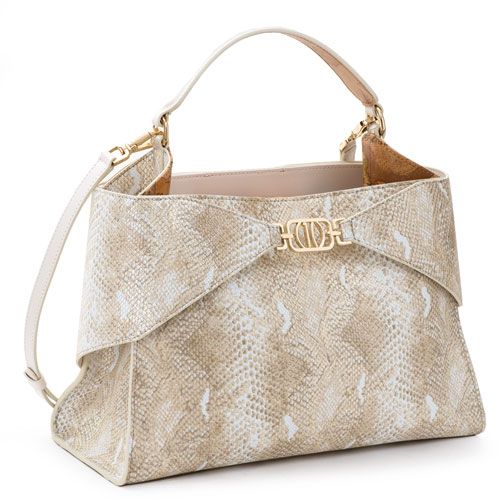 La forma sinuosa e avvolgente della borsa è ispirata alla calla, fiore simbolo di splendore ed eleganza, un richiamo diretto fascino divino di Era.