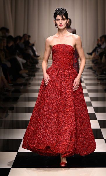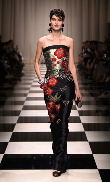 Nel cuore pulsante di Parigi, la città dell’alta moda, sbocciano rose rosse come un inno alla vita e alla bellezza. Queste rose, lucide come lacca, sbalzate su superfici in un motivo toccato dal segno grafico del nero e accenti brillanti d’oro, sono le protagoniste dell’ultima sfilata di alta moda di Giorgio Armani Privè.